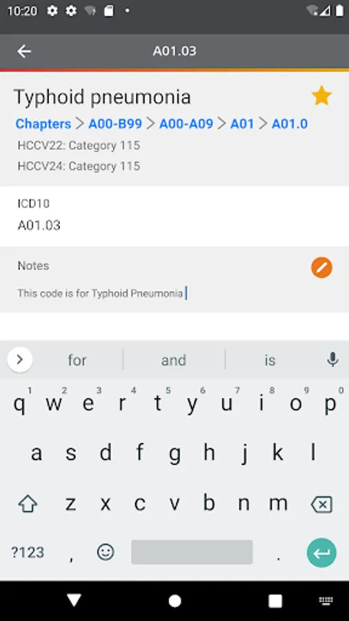 The OptumCare Clinical Documentation Guide allows users to search through over 11,000 diagnosis codes of common conditions using ICD-10 codes, diagnosis descriptors and Hierarchical Condition Categories (HCCs). Once a user locates the appropriate code, they can save it as a favorite, view CMS documentation tips, and add their own notes.