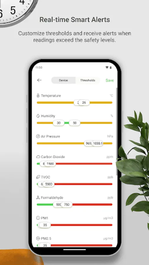 Real-time Indoor Environmental Quality Monitoring: Get accurate and real-time data on various indoor environmental quality parameters such as temperature, humidity, CO2, VOCs, particulate matter, carbon monoxide, formaldehyde, air pressure, light, and sound.