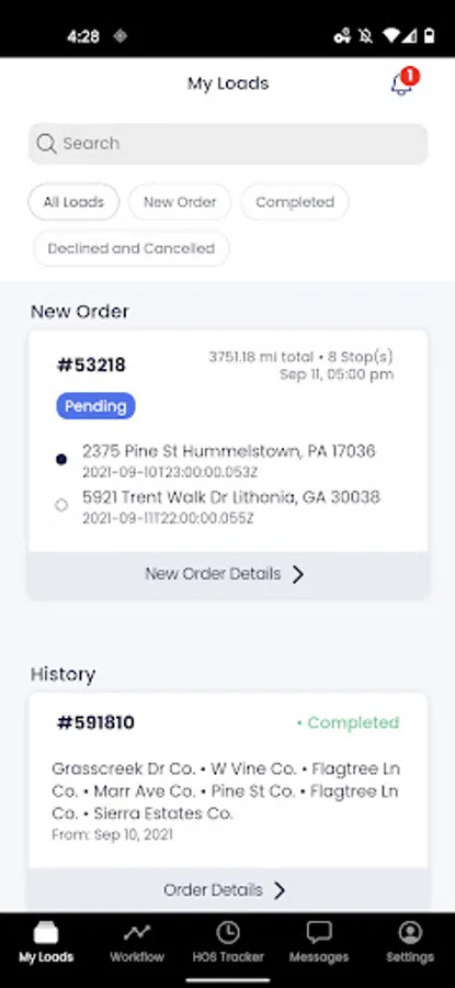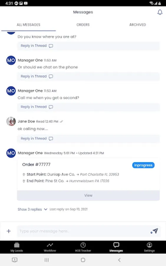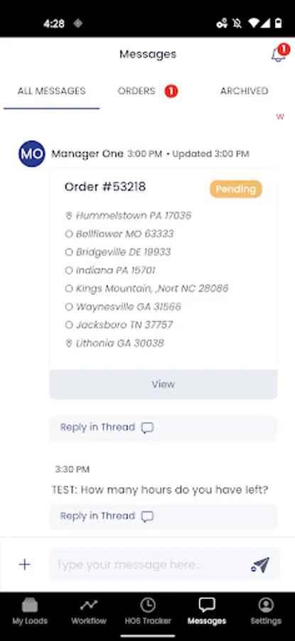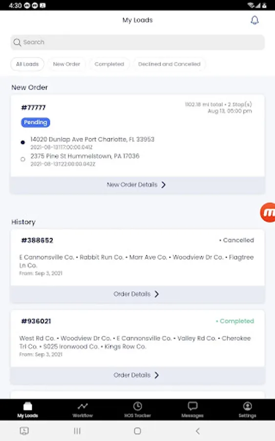 An app to help manage, dispatch, and track orders for a trucking fleet.