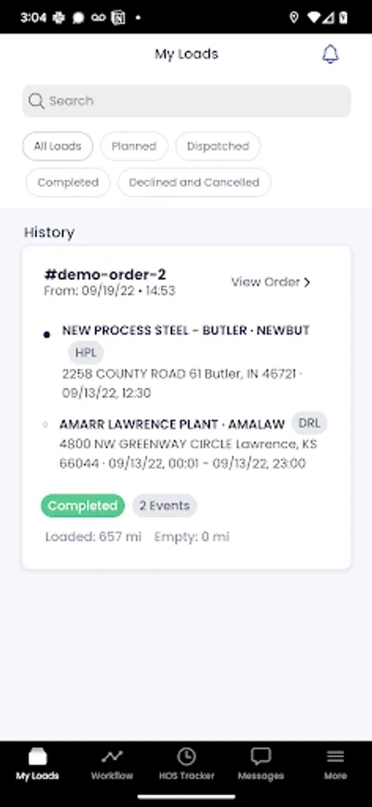 An app to help manage, dispatch, and track orders for a trucking fleet.