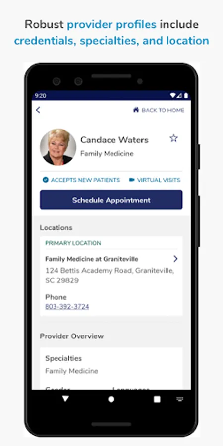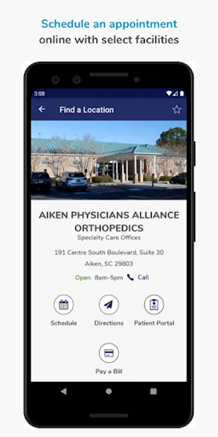 The Aiken Regional app gives you the location and directions to the nearest Aiken Regional Medical Center facilities based on the type of care you need. It also allows you to find a provider, schedule an appointment, view your health records, pay bills, and find nearby amenities like restaurants, gift shops and florists.