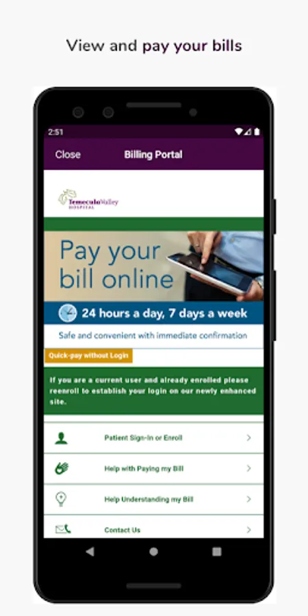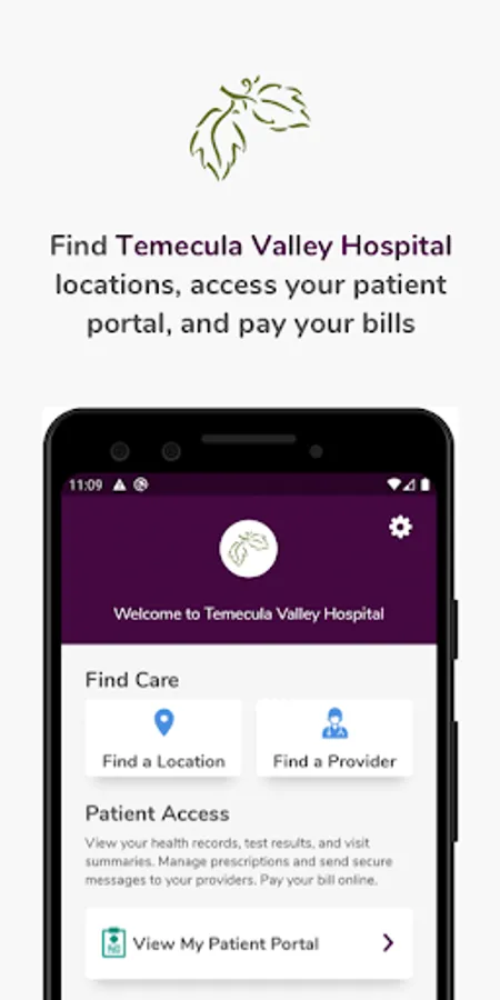 The Temecula Valley Hospital app gives you the location and directions to the nearest Temecula Valley Hospital facilities based on the type of care you need. It also allows you to search providers, schedule an appointment, view your health records, pay bills, and find nearby amenities like restaurants, gift shops and florists.