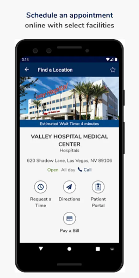 The VHS app gives you the location and directions to the nearest Valley Health System facilities based on the type of care you need. It also allows you to search providers, schedule an appointment, view health records, pay your bills, and find nearby amenities like restaurants, gift shops and florists.