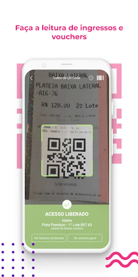 Carries out the tickets to the event access control, by reading QR code or bar code;