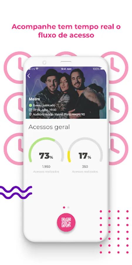 Monitors in real time the flow of access to your event, through indicators and information of the tickets already accessed and others;