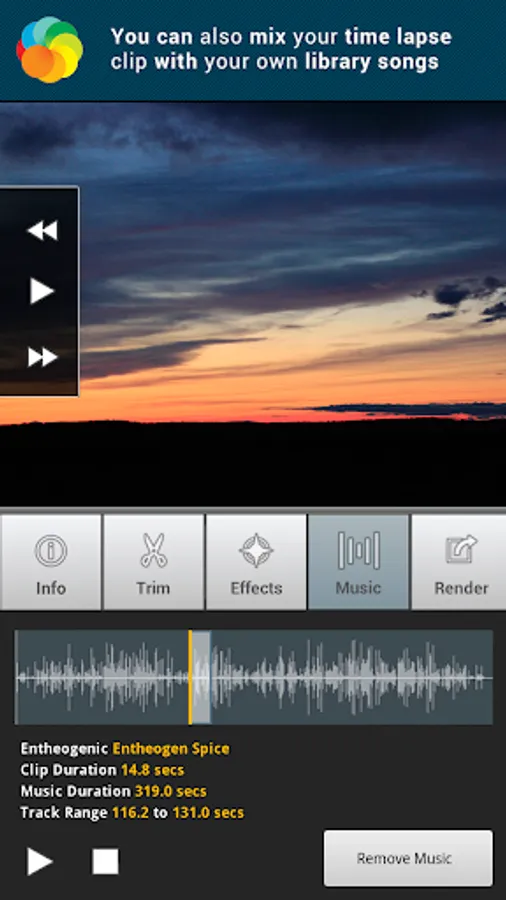 Lapse It has a UNIQUE and POWERFUL native render engine that allows you to create spectacular videos, it is blazing fast, robust, support audio and has a fully featured range of settings to apply.