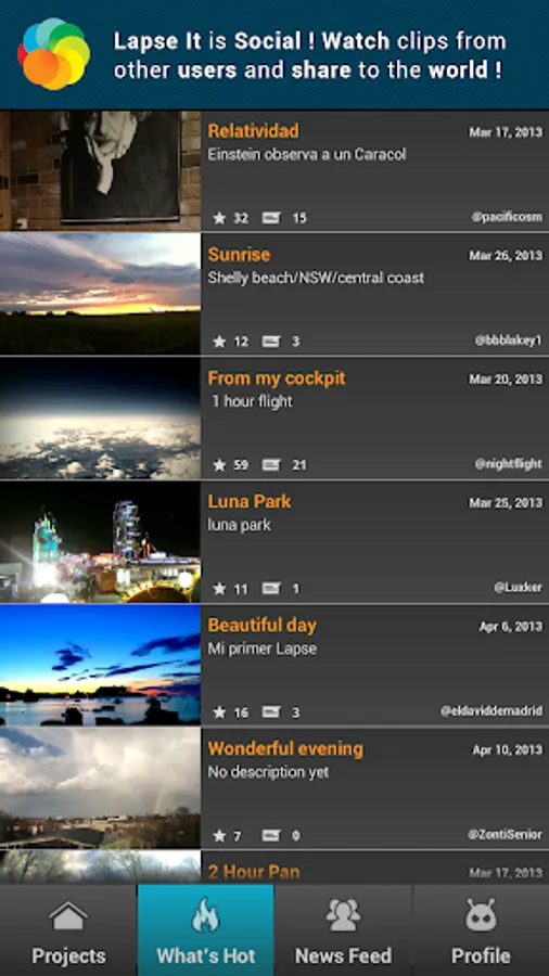 This new version brings more integration with social networks so you can easily publish your videos or share through the built-in Lapse It gallery, where other users can watch and vote.