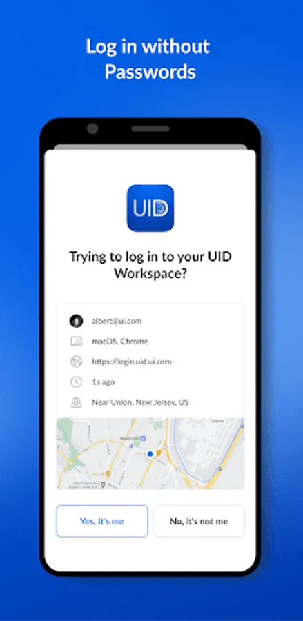 Verify gives your accounts an additional layer of security by requiring two-factor authentication (2FA) of each login attempt. With this feature enabled, users will need to provide their password and a time-sensitive verification code generated either in the app or via push notification. Verify can also supply users with a set of single-use passwords that can be stored locally on their phones should they ever need to circumvent an issue with their main 2FA method.