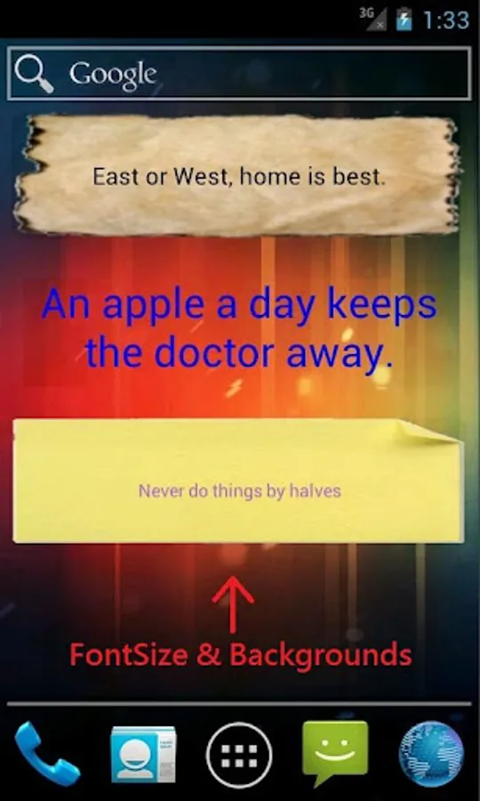 Desktop text widget, enter the sentences, phrases, note, motto that you love or the objectives/goals you want. It can show the previous/next text by clicking left/right region of widget easily.