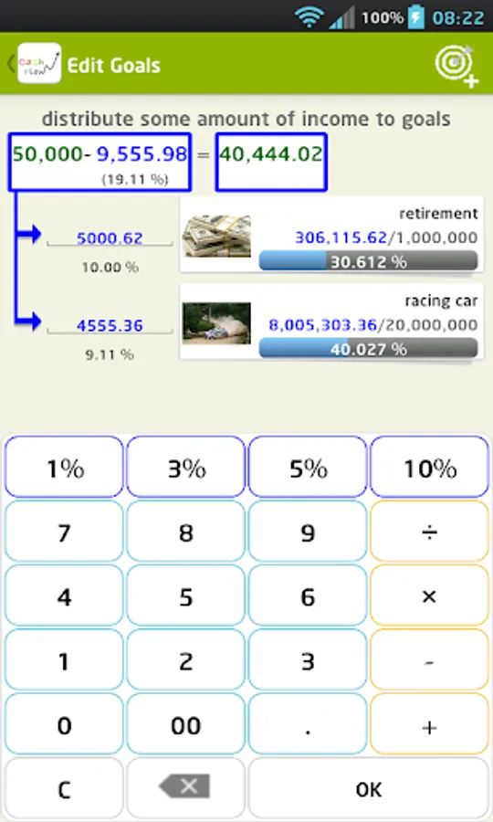 You can set the required money of goals/dreams.Planned use of your income to achieve your goals/dreams step by step..