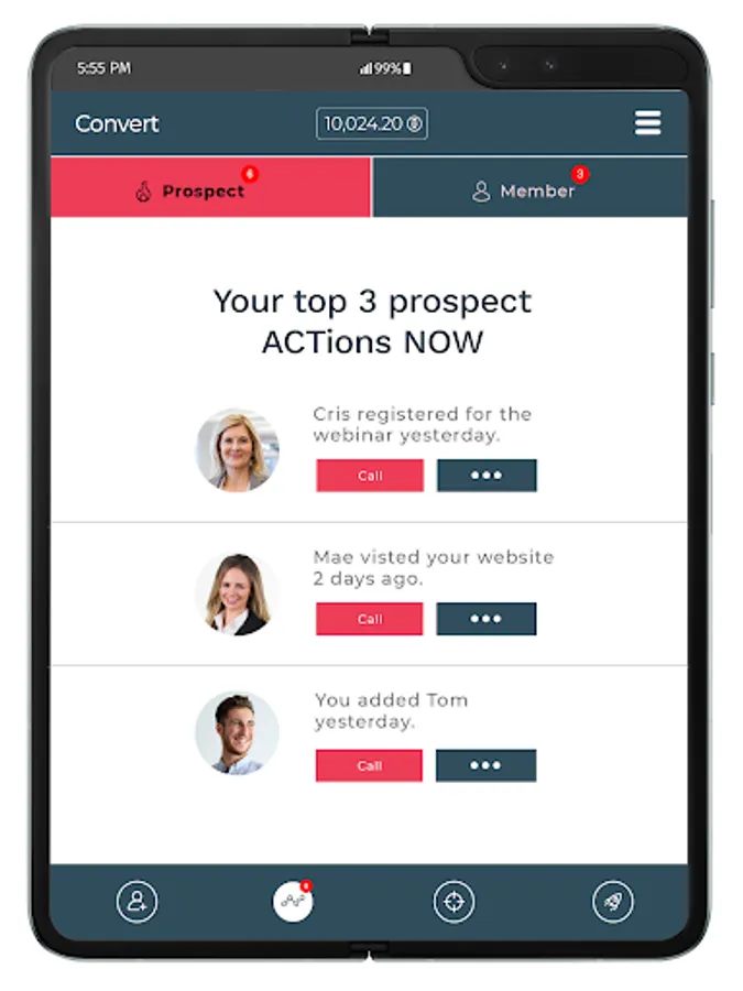 We also have member actions prompting you to follow up with team members, customers, and to share specials with others.