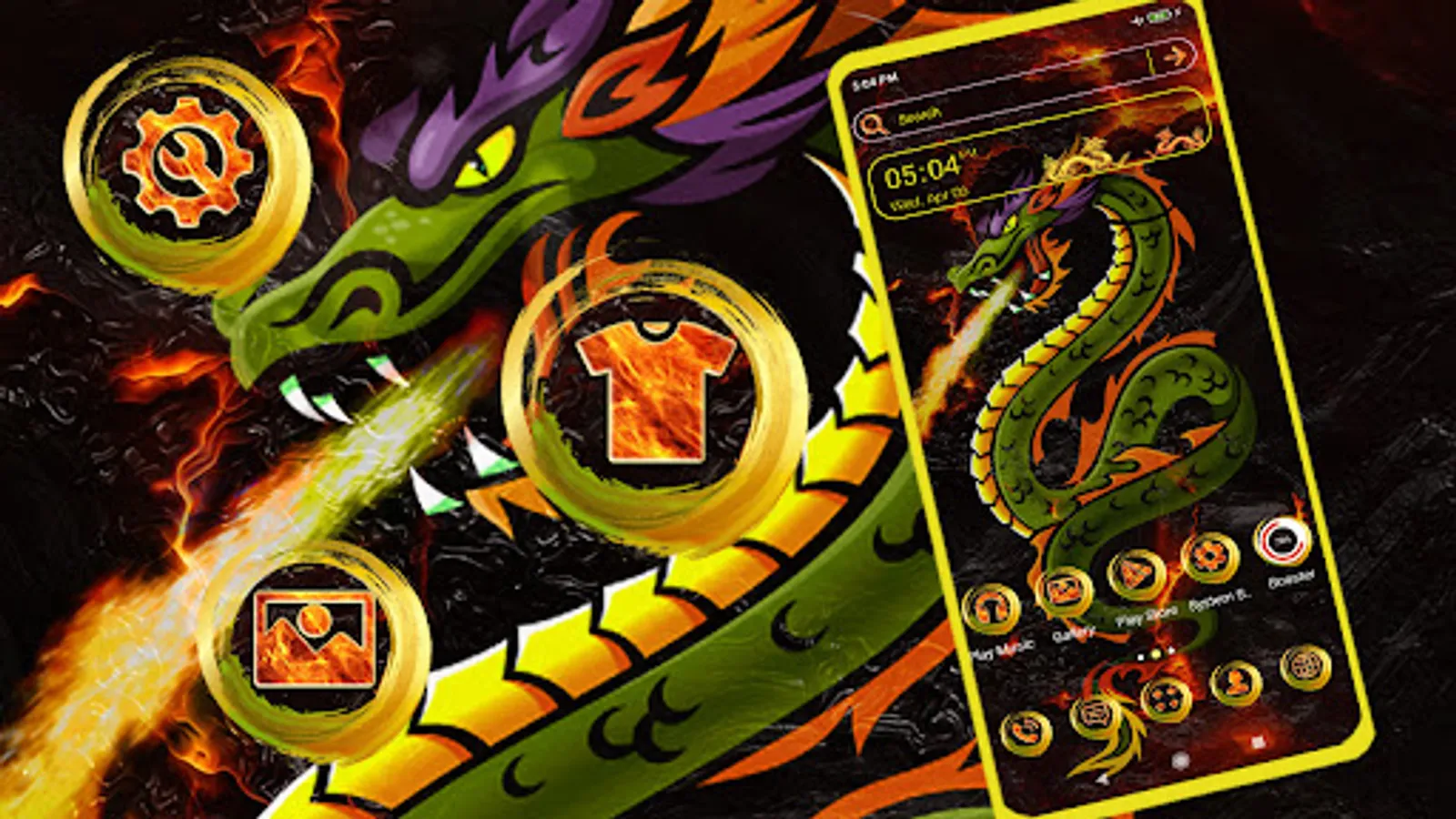 New theme for the Angry Dragon Launcher is available now! To enjoy with FREE Angry Dragon Wallpapers and Icon Pack, add the Angry Dragon Launcher Theme! Turn your phone stylish!