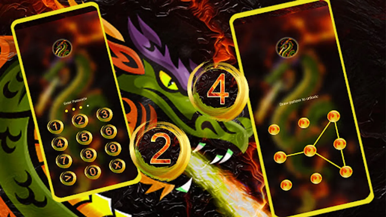 ☞ This Angry Dragon theme also has a lock screen with a cool lock style to make your phone more beautiful & secure, Keep your privacy safe.