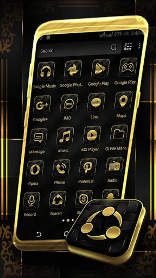 Gold Black Launcher theme is our new free theme pack with stunning Gold Black Launcher HD theme wallpaper and Gold Black Launcher interface theme. The Gold Black Launcher theme is filled with HD Gold Black Launcher theme wallpapers and beautiful Gold Black Launcher theme icons designed for fanatics of the mobile app. Please download the theme of the Gold Black Launcher now, more surprises await you to discover!