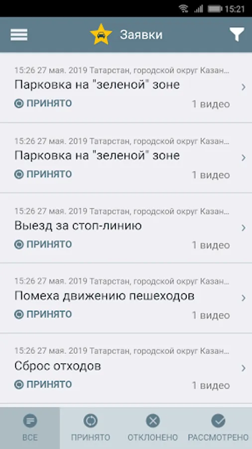 - Sending emails with video taken with a mobile app, traffic police in the Republic of Tatarstan and the administrative and technical inspection;