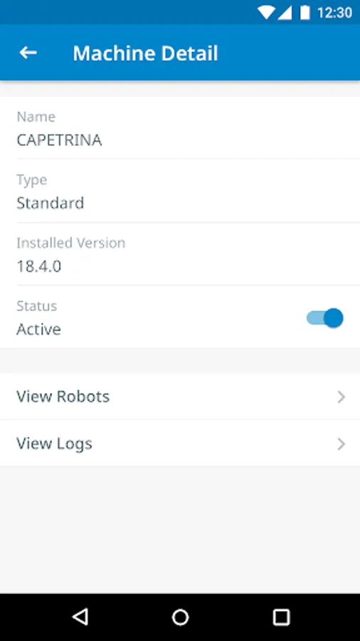 * Drill down data including type, status and logs for robots, machines, jobs, and schedules.