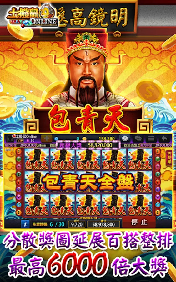 "Bao Qingtian" scatter prize map extends the whole row of wild prize map, 6000 times super prize is waiting for you to win.