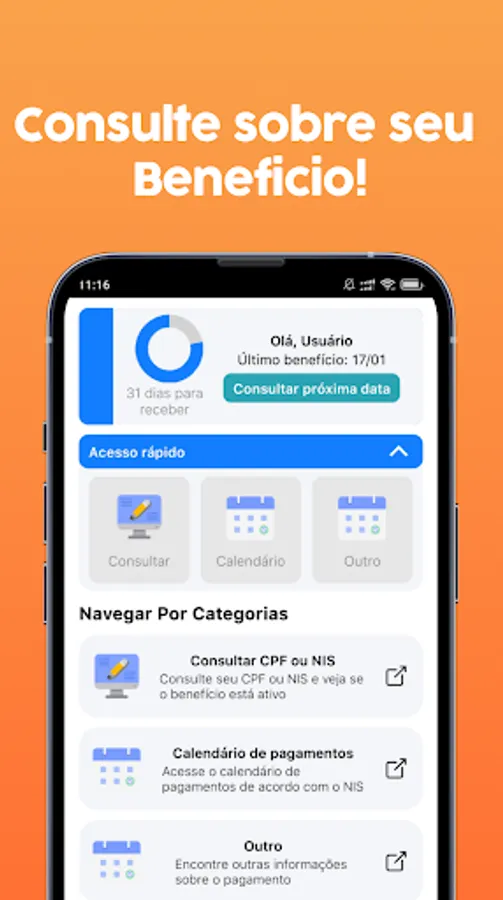 The Bolsa Família CPF consultation application aims to help you consult your Bolsa Família Benefit. Simply and quickly, access the Bolsa Familia payment dates, with an organized and easy-to-view calendar. Have the annual benefit calendar in the palm of your hand.