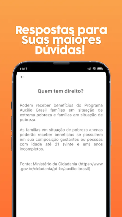The application does not represent a government entity. The app has no connection with the CEF (Caixa Economica Federal) or the Federal Government. The Bolsa Família / Auxílio Brasil brand is fully owned by the Federal Government.