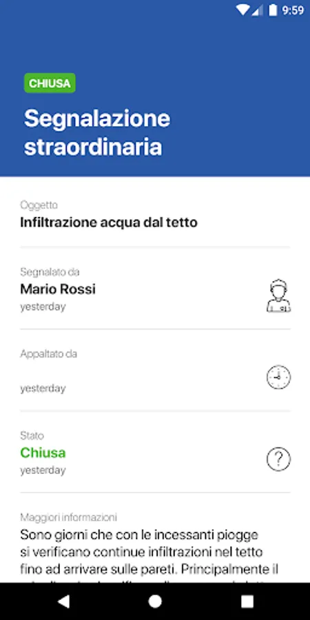 It is also possible to report faults or interventions concerning the condominium and be updated in real time on the status of the same.