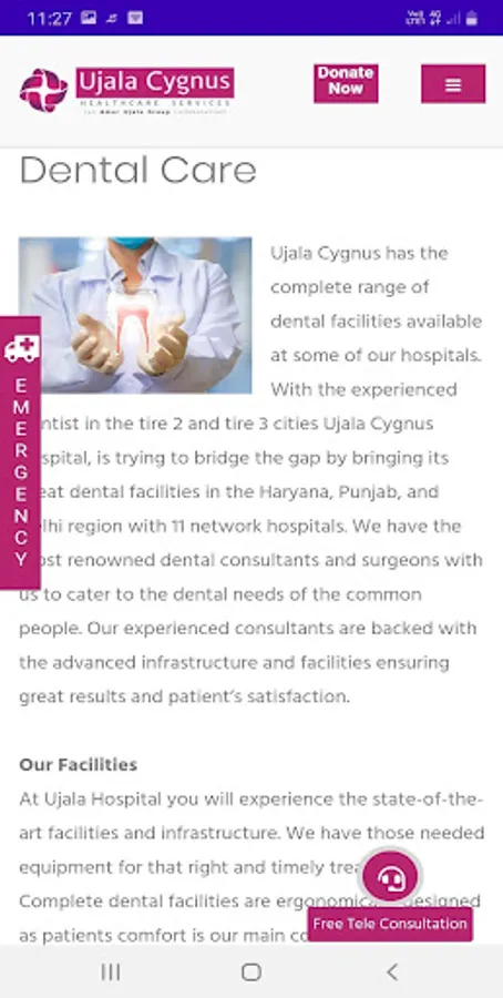 Ujala Cygnus Hospital is a leading healthcare provider in North India having a network of more than 12 hospitals across Haryana, Uttar Pradesh and Uttarakhand. It provides affordable healthcare with state of the art facilities and offers gastroenterology, oncology, gynecology, emergency unit, ICU, trauma centre, orthopedic, neurology and intensive care services. It is also empanelled with Ayushman Bharat scheme.