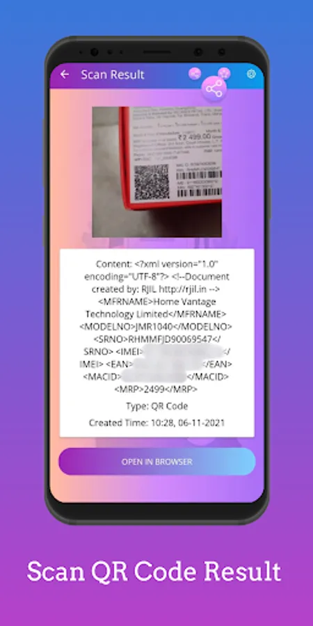 Detect codes within picture files or scan directly using the camera.