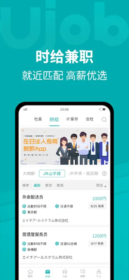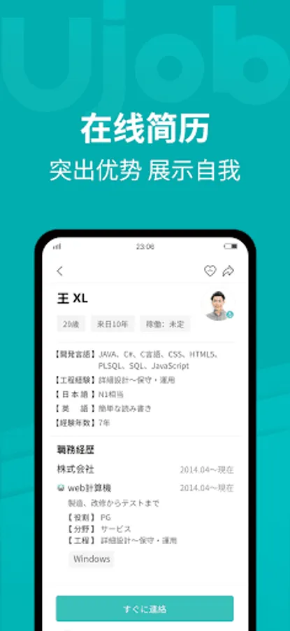 Ujob is a job hunting/job dating app for Chinese in Japan, focusing on good jobs in Japan. It specializes in serving nearly one million Chinese working and living in Japan. Comprehensive coverage of full-time, part-time, hourly workers and other high-quality jobs in various industries in Japan.