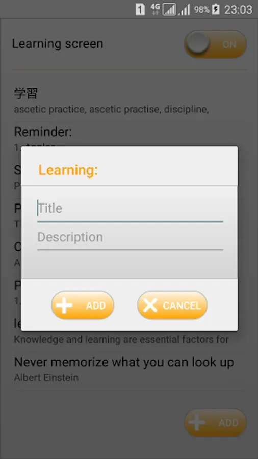 Learning Screen: