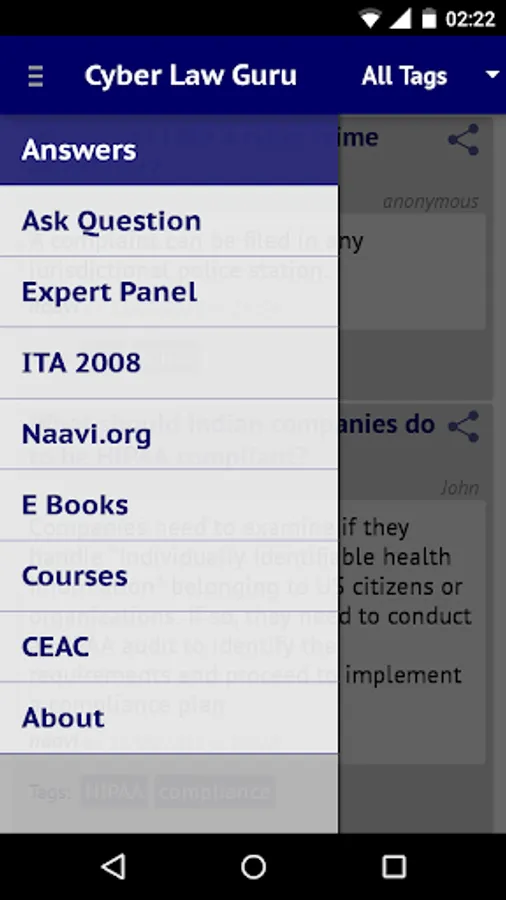 Additionally, the menu gives access to several services rendered by Naavi such as the Cyber Evidence Archival Center (CEAC), E-books, courses on Cyber Laws and other services described in greater detail in www.naavi.org, the premier Cyber Law portal in India.