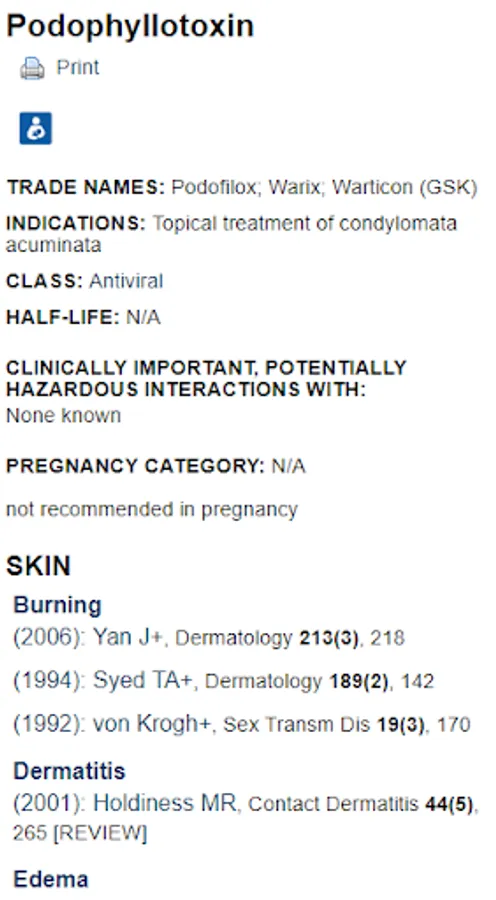 This resource covers adverse reactions from all angles with information on skin, hair, nails, mucosal, cardiovascular, central nervous system, neuromuscular/skeletal, respiratory, gastrointestinal, endocrine/metabolic, hematologic, renal, genitourinary, otic, ocular, local and other. It identifies potentially hazardous drug-drug interactions, making it a resource that not only meets your needs as a busy physician but also one which, once you have tried it, you simply cannot live without.
