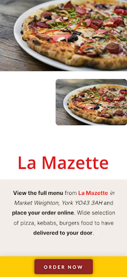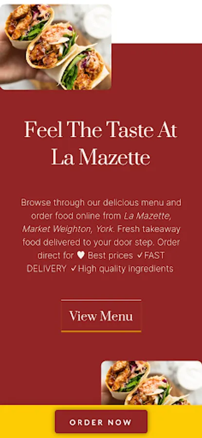 Order food online in Market Weighton! Download our official mobile app and Order DIRECTLY from La Mezette located in 28 High St, Market Weighton YO43 3AH.