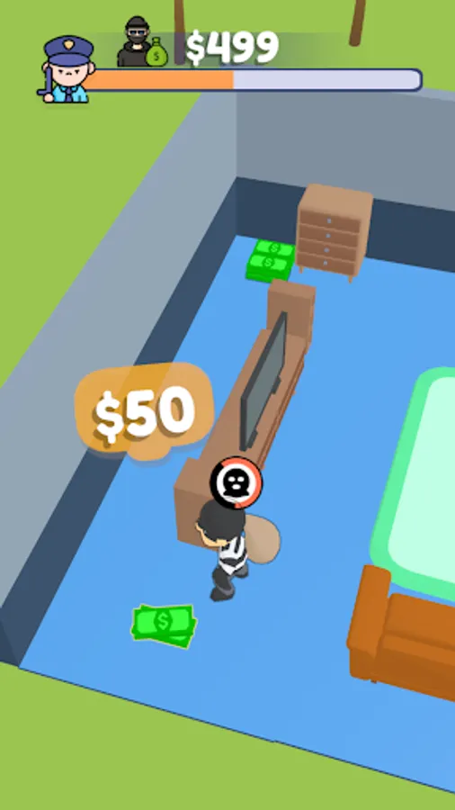 Take on the role of a professional thief and navigate through a bustling city, breaking into homes and businesses to steal valuable items. Use your stealth and cunning to avoid detection from the police and make a successful escape. With stunning 3D graphics and intense gameplay, "Robber Town 3D" will keep you on the edge of your seat. Download now and see if you have what it takes to become the top robber in town!"