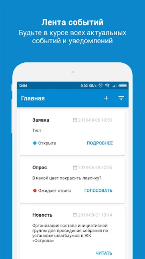 • Receive push notifications about new events, news, polls, accounts and the progress of your applications.