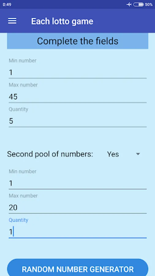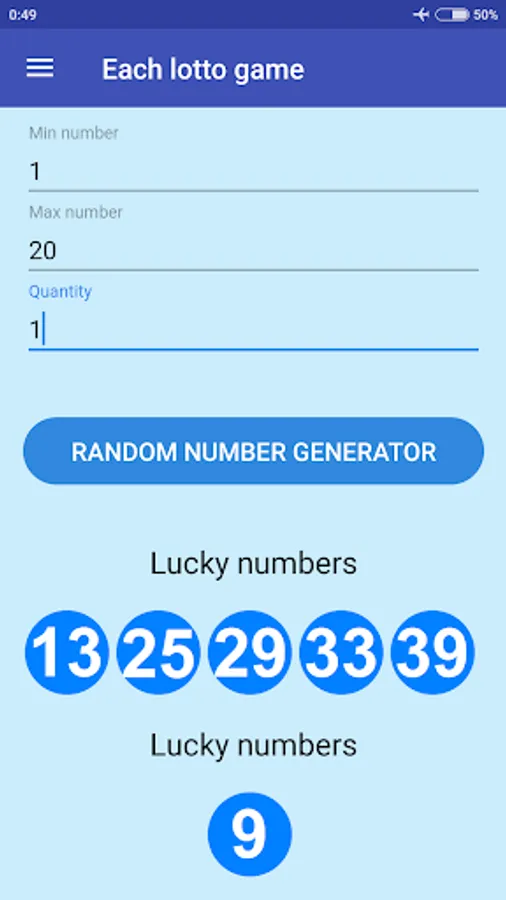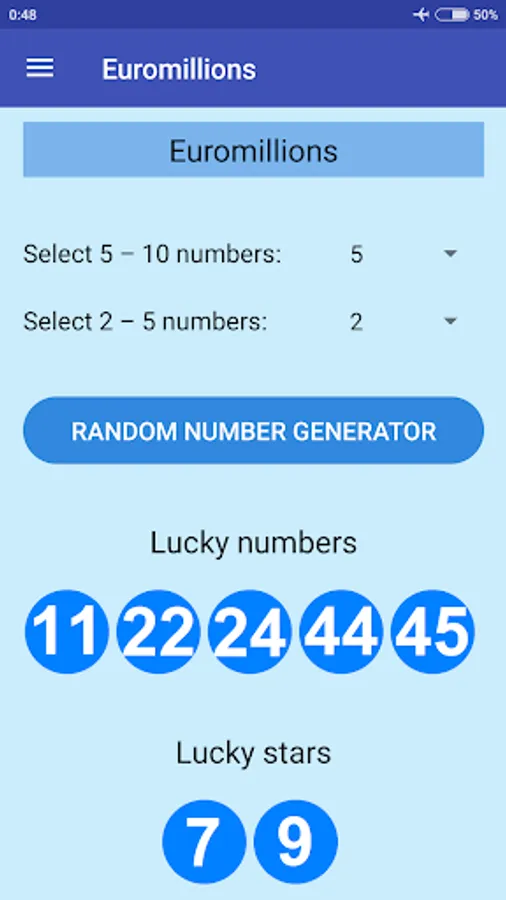 The application is made to help you pick random numbers but does not encourage to play the lottery or any kind of gamble.
