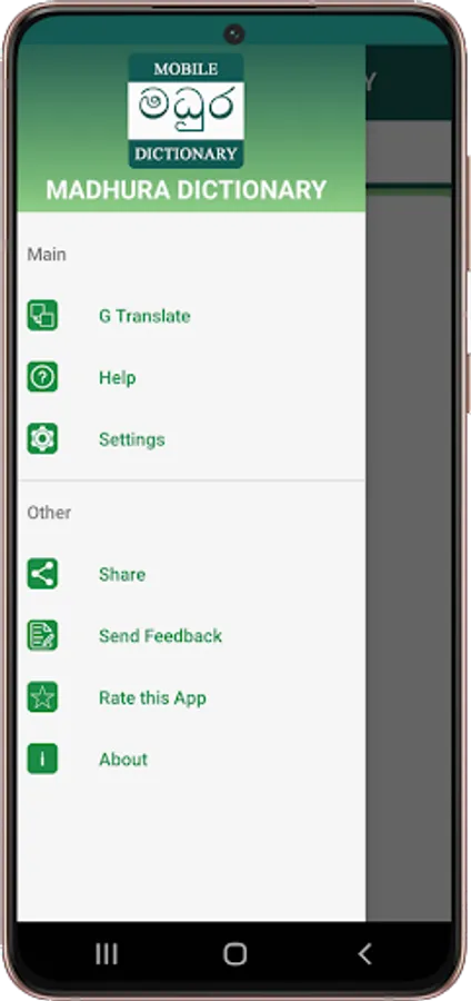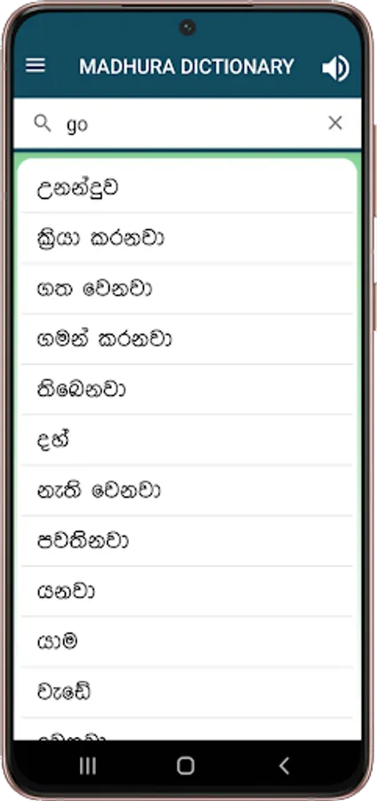 MADHURA Dictionary is an offline and free mobile application. You can search both English and Sinhala words. This is not only a Dictionary but also a learning tool. When you start typing, you will see some words starting with the letters you typed. The dictionary searches in a database for the matching words. This will be helpful to find out the meaning of any word.