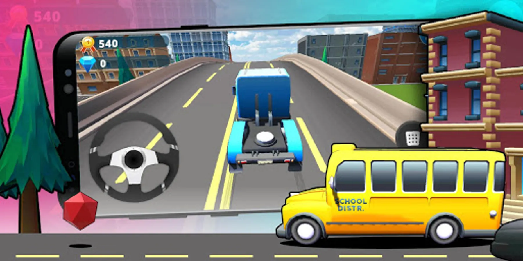 There are a lot of Truck games on the Google Play Store, but this is the most addictive and funny semi truck racing simulator you will ever try. Download free, become a truck driver in Ukelele City and collect all the gems π + avoid vehicles traffic in a lovely cel shading cartoon 3D world. Easy, right? Not at allβ¦ Are you ready to drive trucks in 2020 with this arcade game? Are you ready to test your trucker skills with our steering wheel? The best new pure trailer simulation ever mixed with casual stuff. No matter if you're a boy or a girl.
