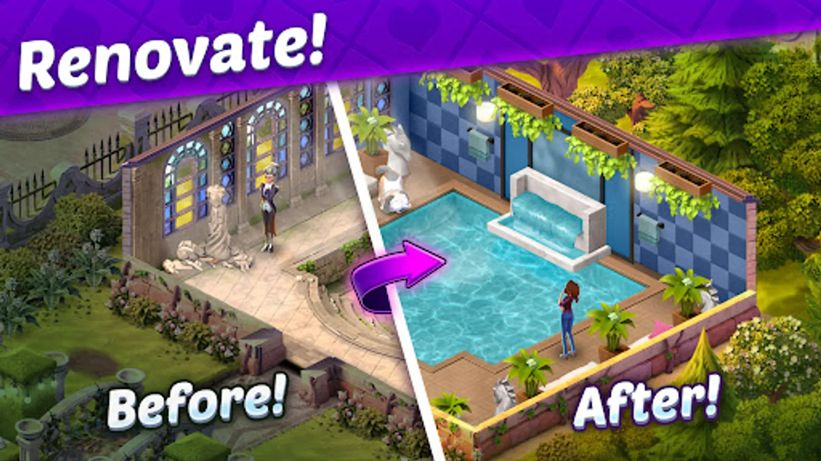 ✅ RENOVATE and Decorate: Expand and decorate your Manor and gardens 🌳. Unlock new rooms to renovate as you solve innovative solitaire card levels.