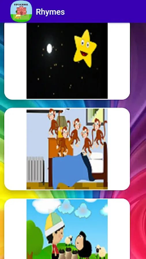 boat","london bridge falling down","abcd rhymes","old Machdonald farm","wheel on the bus