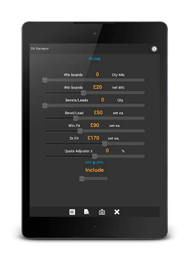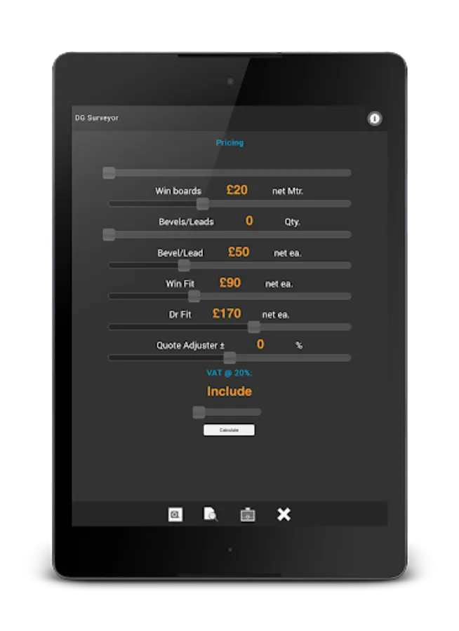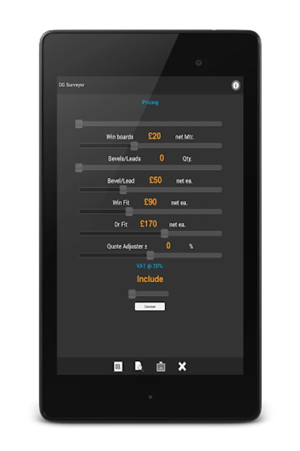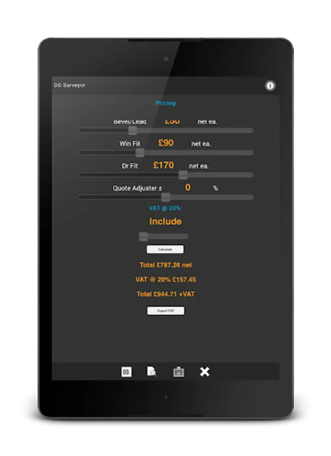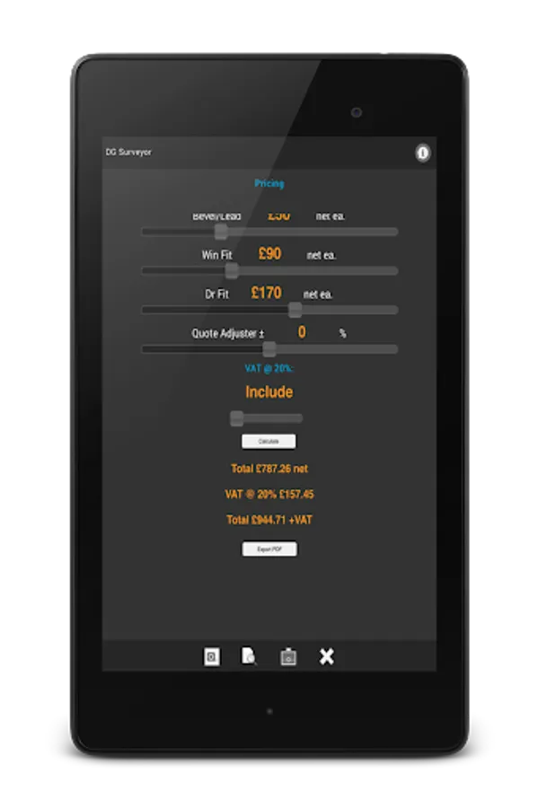 Optional In-App Purchase now available that completely un-locks the in-app pricing system, allowing you to input 'your own' company figures and in turn offer accurate estimates and pricing calculations at the touch of a button.