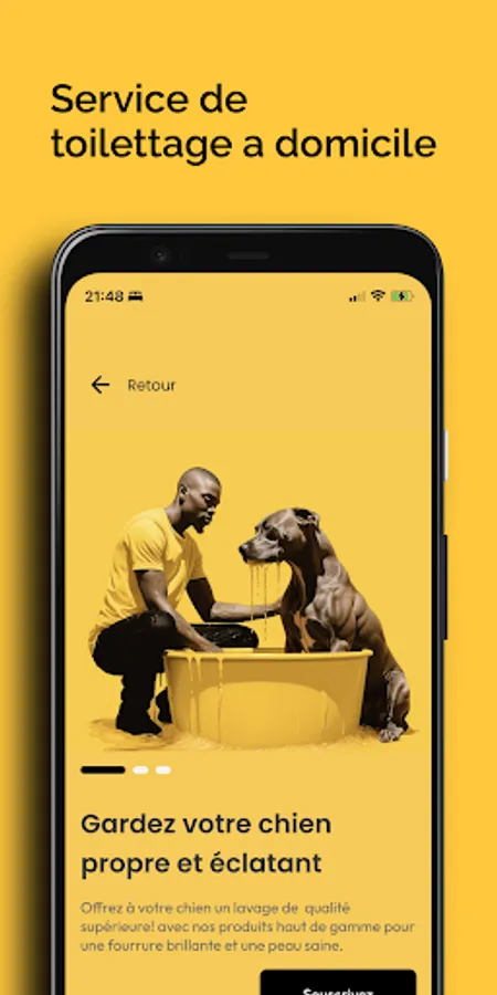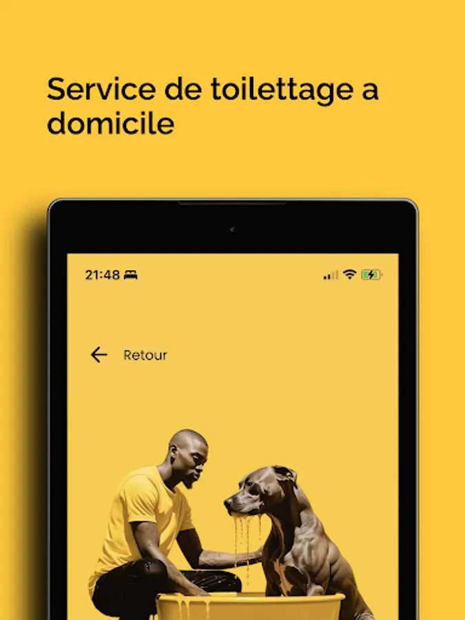 The WoofWorld app is designed to make your experience easier. Browse our gallery of available dogs, see their detailed profiles, get valuable information about their breed, temperament and specific needs. You can also book a grooming appointment in just a few clicks, choosing from our varied grooming services.