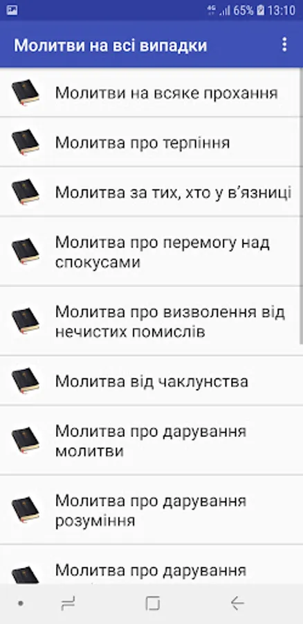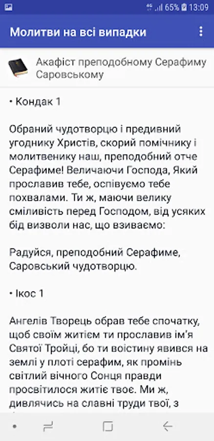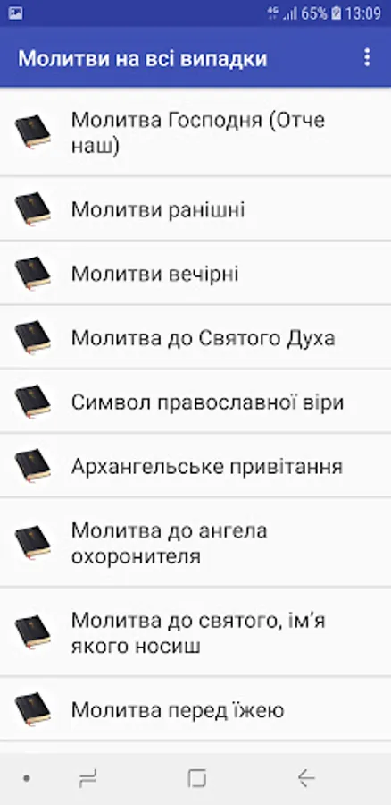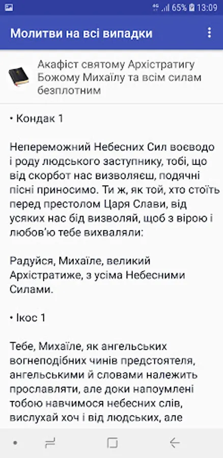 This app includes the most commonly used Ukrainian prayers. Here you will find prayers to the guardian angel, to the Saints, or to God himself. We will continue to increase their list. If you think any of the prayers are incorrect, or you need to add something new and useful, be sure to write to us.