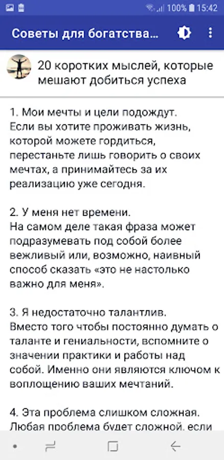 The application is constantly updated, new information is added to it to provide people with more detailed and relevant advice. It must be remembered that if rich people made mistakes often, they would not be able to earn the huge fortunes that they have. Therefore, it is advisable to use their winged statements for making decisions in everyday life. Perhaps thanks to this, you will be able to achieve success.