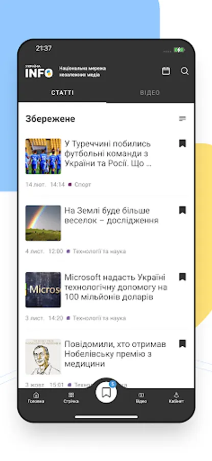 The application is very easy to use. You can view information as a guest, or create an account and personalize feed settings, notifications about publications that match your interests; like or add the article to favorites.