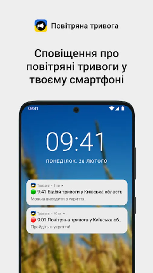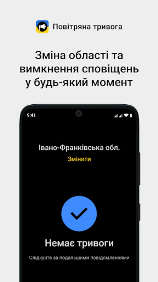 Install the Air Alarm app to instantly receive an air alert notification in your chosen city or region of Ukraine from the Civil Defense System.
