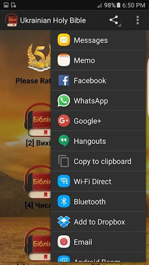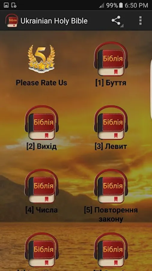 біблія - Free Ukrainian Bible for android device. If you are Ukrainian, this Ukrainian Bible app is the best Bible for you! Ukrainian Holy Bible has got all chapters of Old Testament and New Testament in Ukrainian language. This app offers free text Bible in Ukrainian language. You can read the Bible wherever you go with this app. User interface is designed for easy navigation capabilities. This app is perfect for Ukrainian people around the world who wants to read the King James Bible in Ukrainian. Try now FREE! You will love this app.