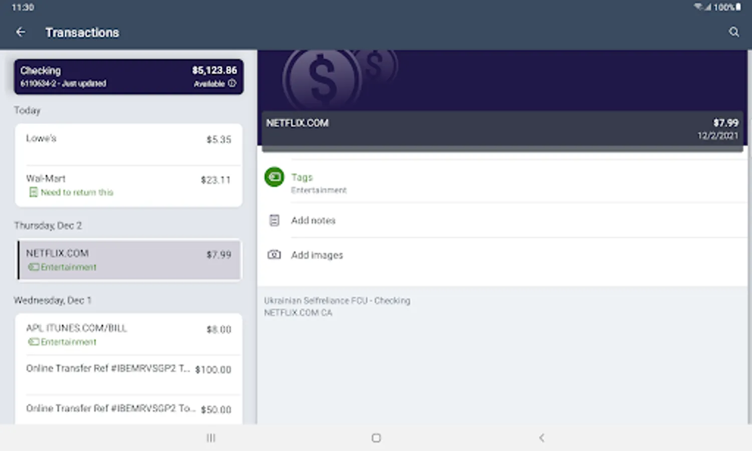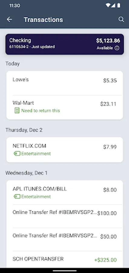 Review recent transactions