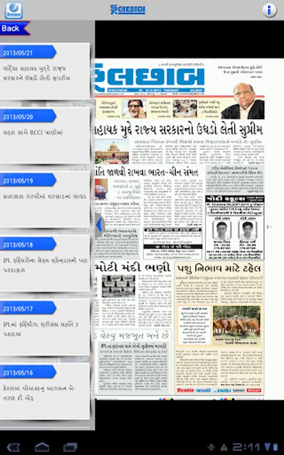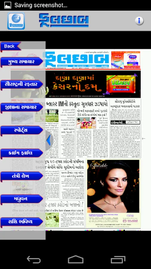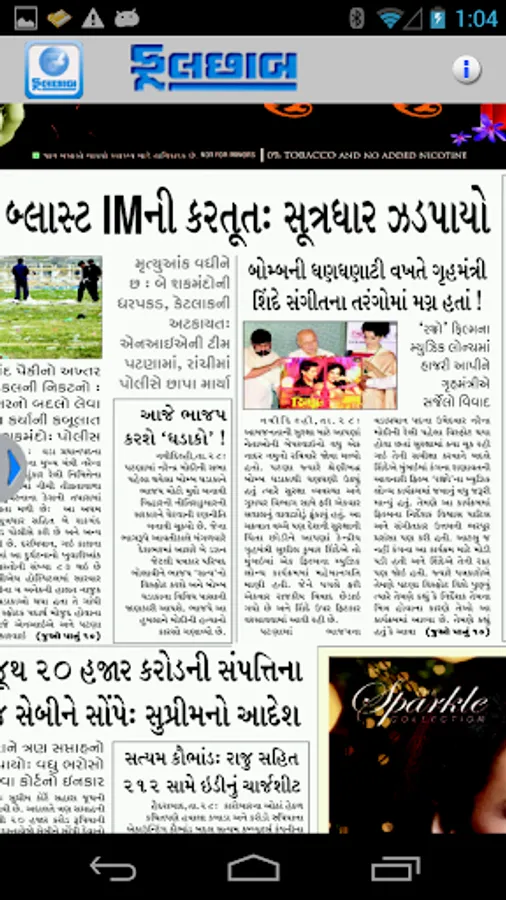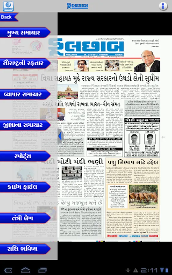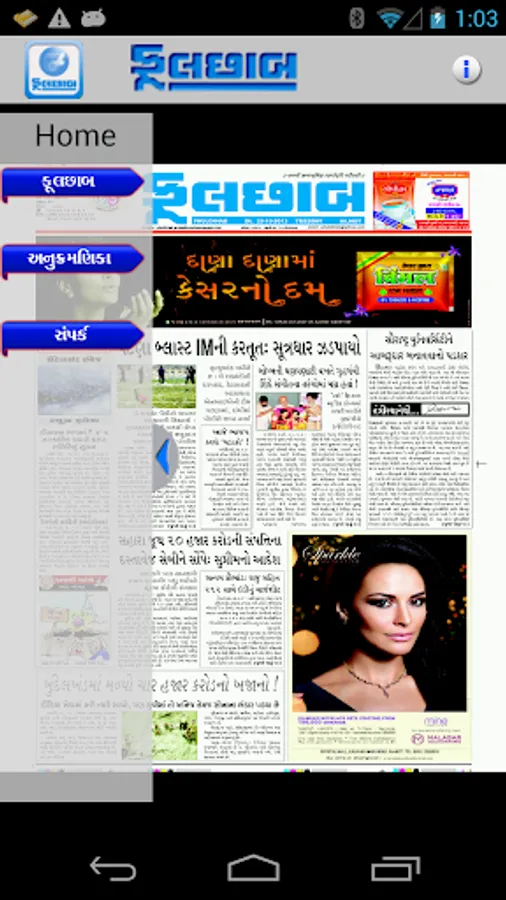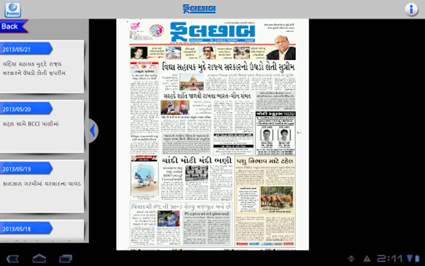 Get the official Android version of PhulChhab Gujarati Newspaper right on your Android .The ePaper downloads the entire print edition of the newspaper for offline reading. You can use your finger - tips to "pinch and zoom" the text in articles if you would like to enlarge, or reduce the font size. You can read the edition in portrait or landscape mode.