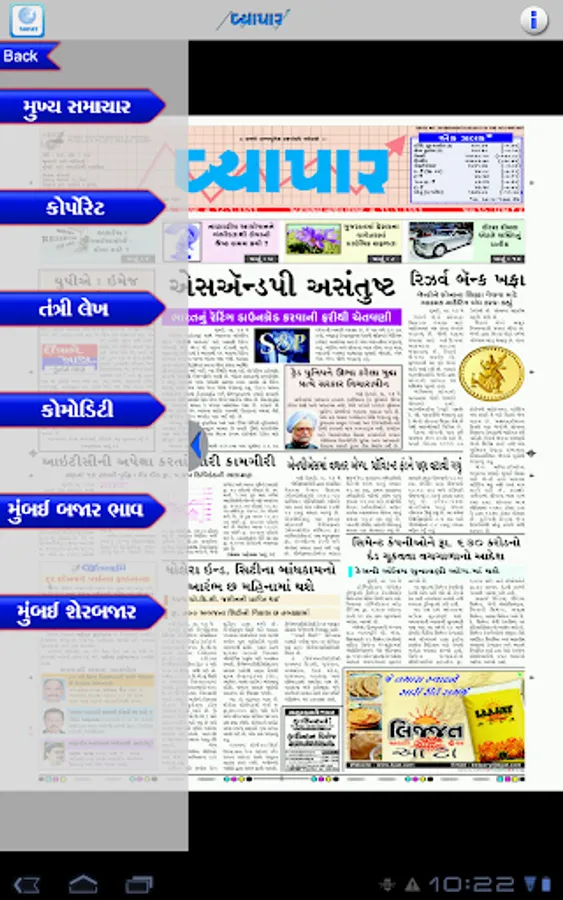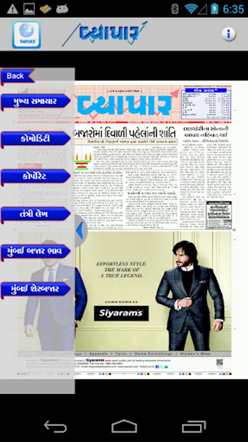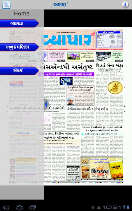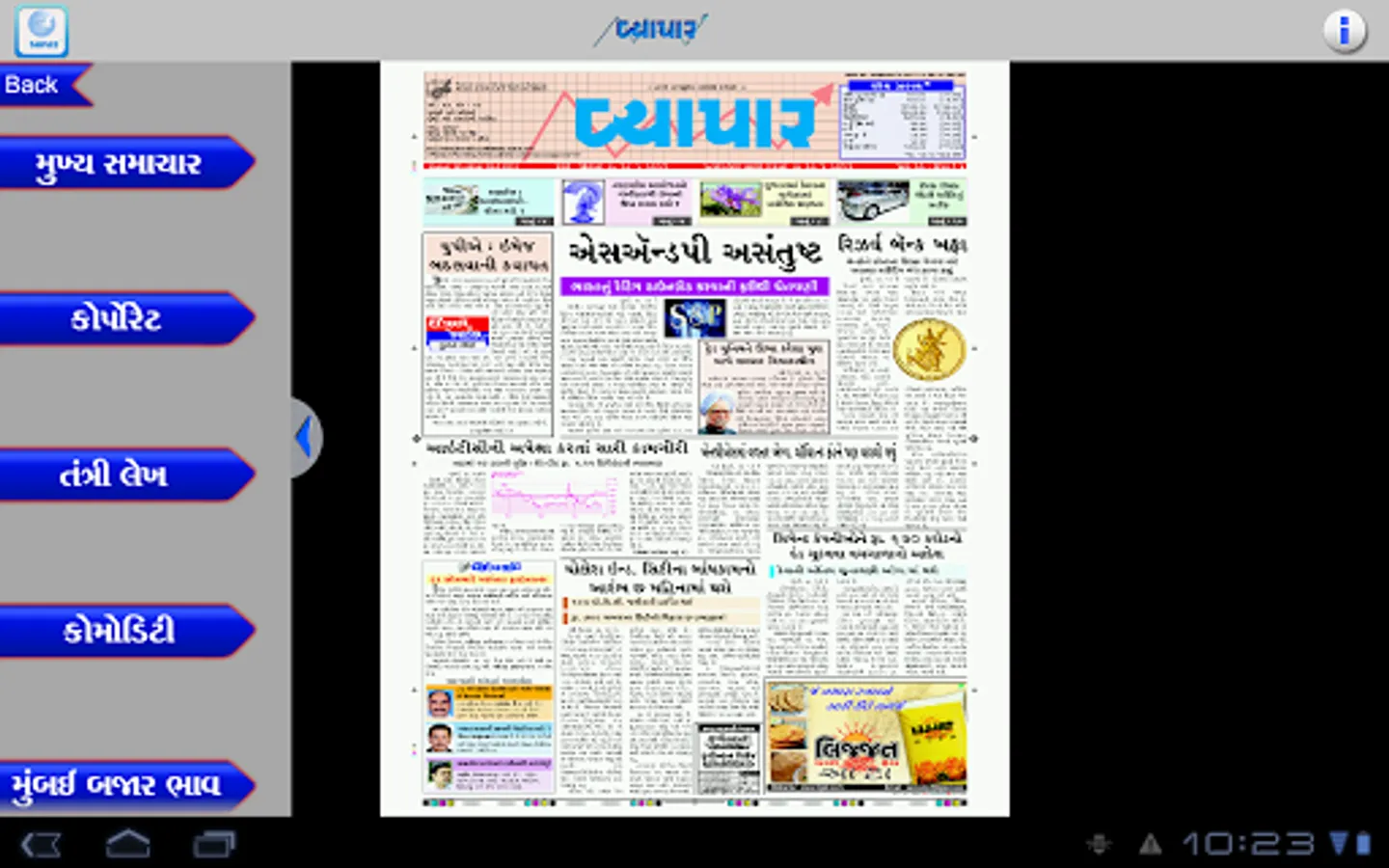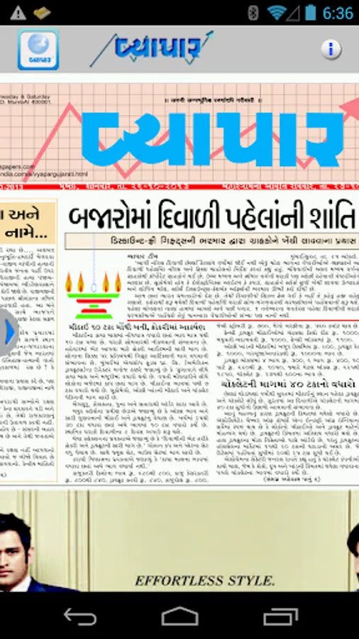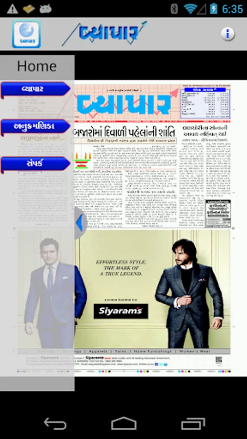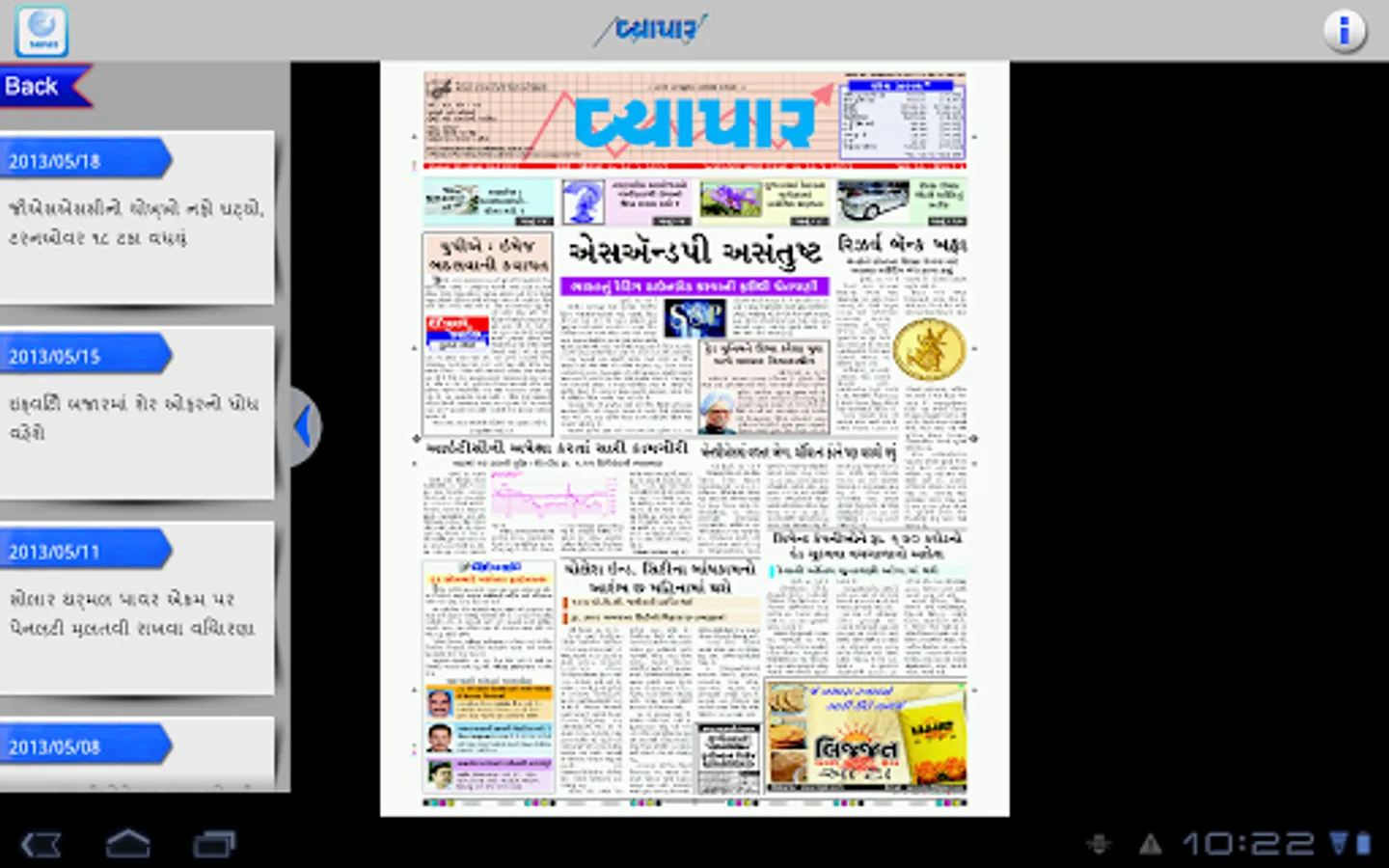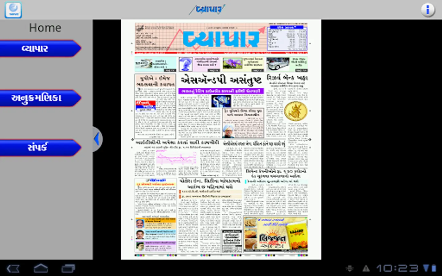 Get the official Android version of Vyapar Gujarati Newspaper right on your Android. The ePaper downloads the entire print edition of the newspaper for offline reading. You can use your finger - tips to "pinch and zoom" the text in articles if you would like to enlarge, or reduce the font size. You can read the edition in portrait or landscape mode.
