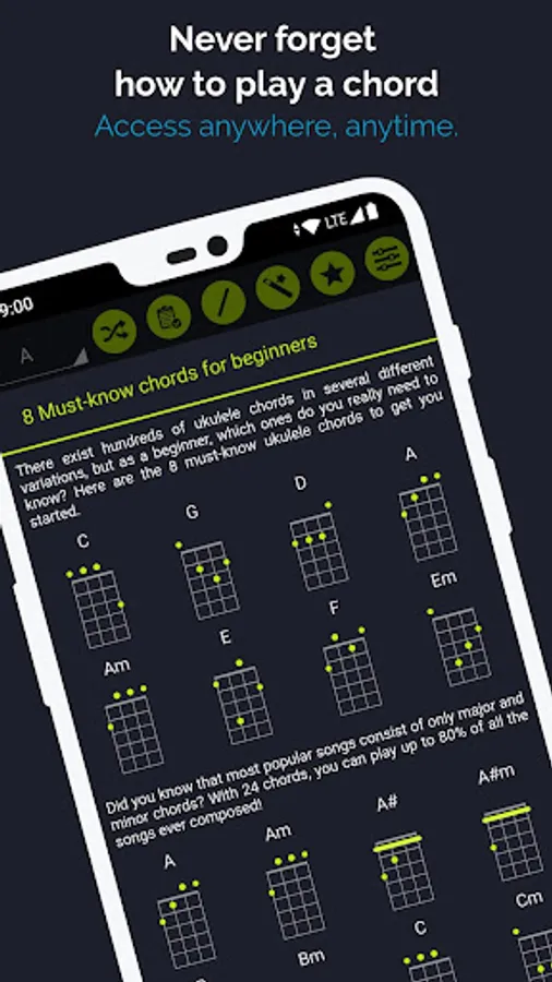The largest library of Ukulele chord charts available for your mobile, available in any of the 4 most-popular Uke Tunings.