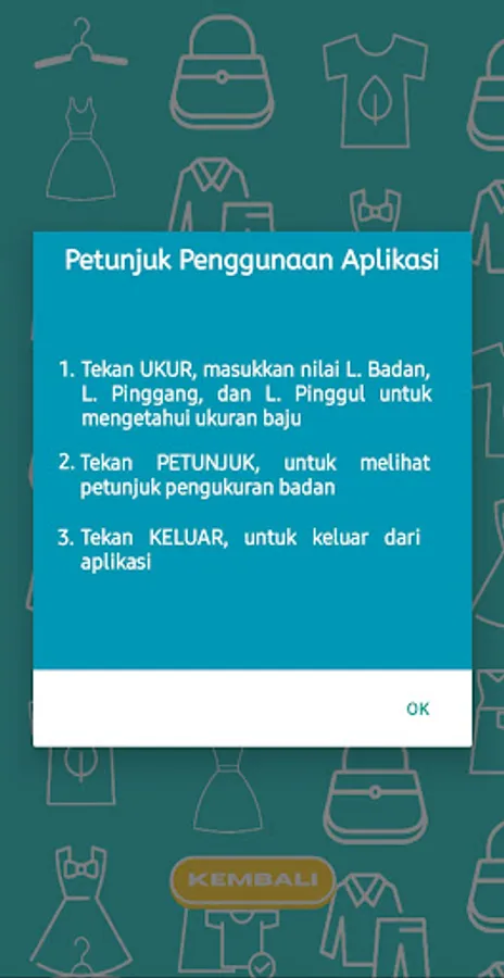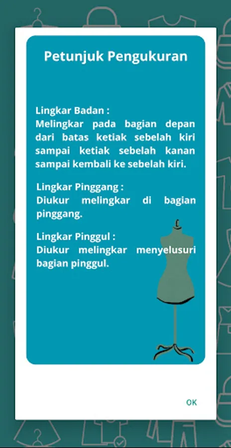 Kenyataannya, seseorang yang awam dalam membuat busana akan kesulitan menentukan ukuran baju yang sesuai dengan ukuran tubuhnya. Untuk itu, dalam penelitian ini dibuat aplikasi pengukur baju wanita indonesia berbasis android, dengan cara mengisi 3 macam ukuran badan yang diperlukan, yaitu lingkar badan, lingkar pinggang, dan lingkar panggul. Alat yang dibutuhkan untuk mengukur badan adalah meteran, kecuali bagi yang sudah mengetahui ukuran badannya sendiri, maka tinggal memasukkan saja ukuran tersebut ke aplikasi.